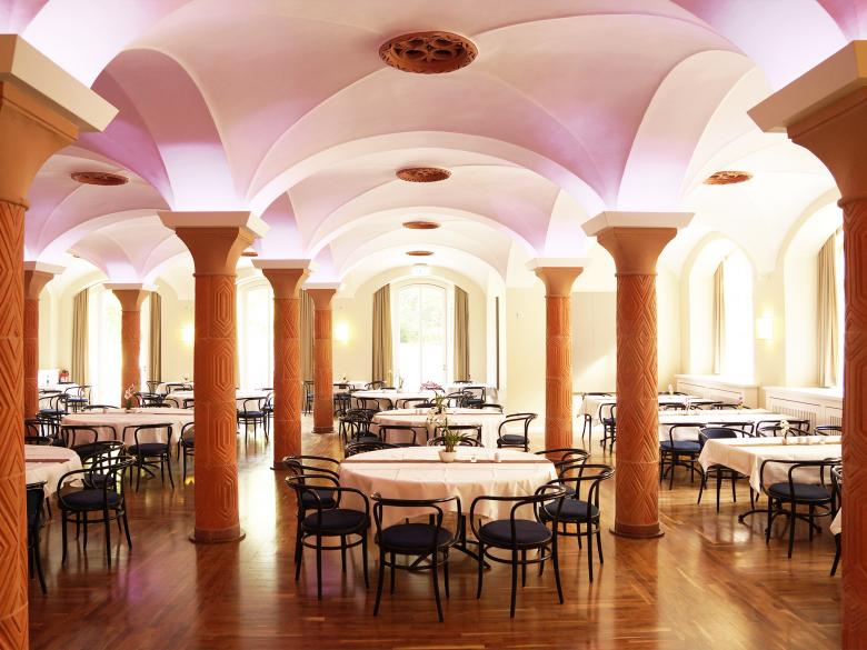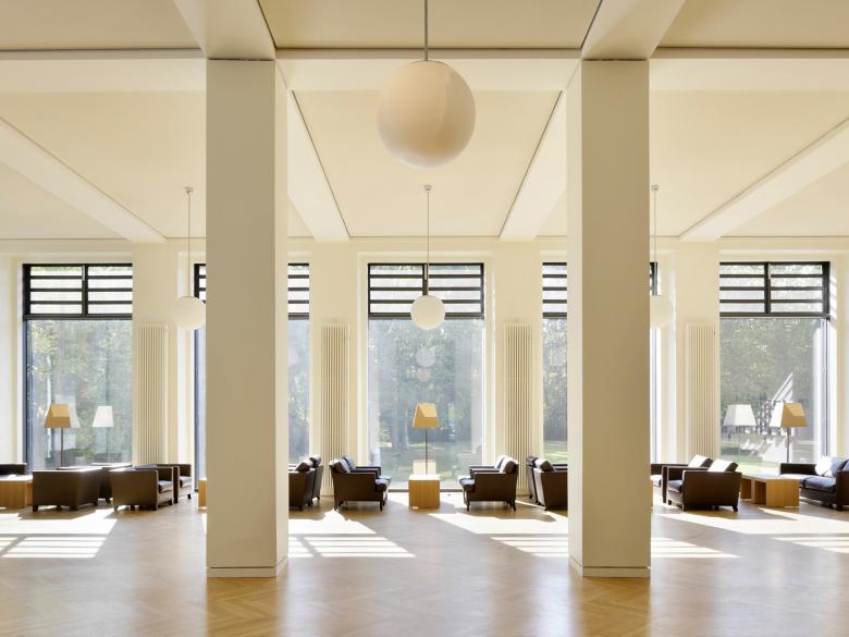 Haupthaus, Hörsaalgebäude und Gästehaus mit Veranstaltungs- und Konferenzräumen sowie Gästezimmern und Gastronomie wurden einer behutsamen energetischen Sanierung unterzogen. Das vielfältige Nutzungskonzept verlangte umfassende Anpassungen an heutige Brandschutzanforderungen. Diese sind mit den gestalterisch gesetzten Zielen und Anforderungen der Denkmalpflege zu einem schlüssigen architektonischen Gesamtkonzept zusammengeführt.