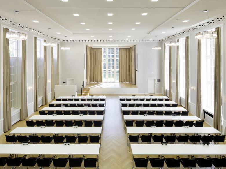Die denkmalgerechte Sanierung des Ball-, Goethe- und Hörsaales orientiert sich am ursprünglichen Erscheinungsbild der historischen Räume. Einbauten und räumliche Veränderungen nach 1945 sind im Wesentlichen zurückgebaut. Der Ballsaal der Amerikaner ist verkleinert, um das historische Treppenhaus als eigenständigen, barrierefreien Zugang zum Hörsaal und Ballsaal mit einem neuen Aufzug herzustellen.