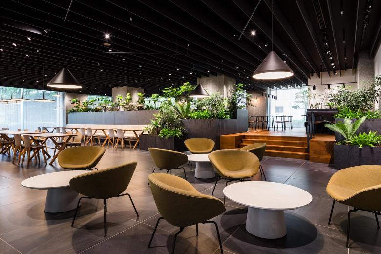 かつて会議室が並んでいたエリアにはダイナミックに植栽を配し、開放感のあるミーティングスペース「ボタニカルラウンジ」へと刷新。段差には植物をビジュアルディバイダーとして挿入し、プライバシーを意匠的に操作することで、ミーティングに集中できる環境を実現しました。