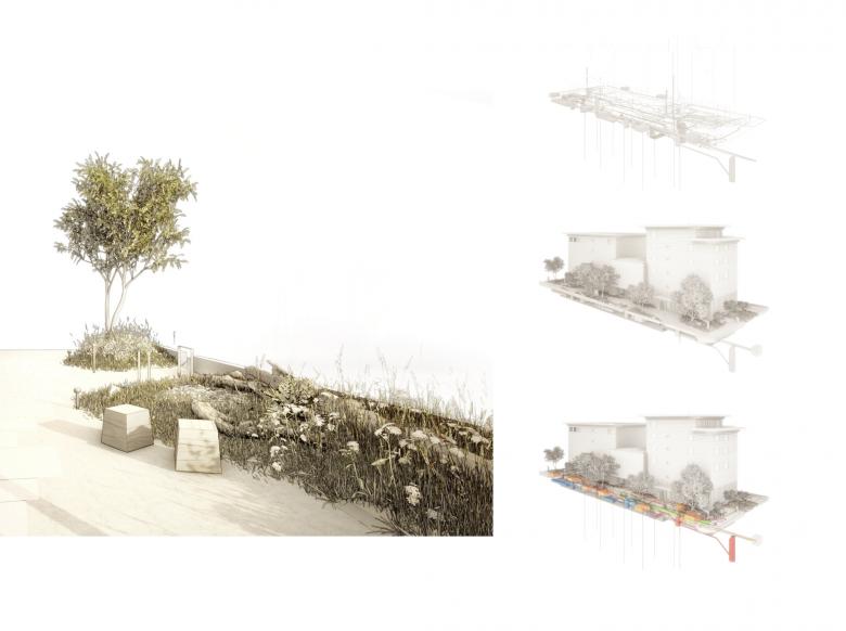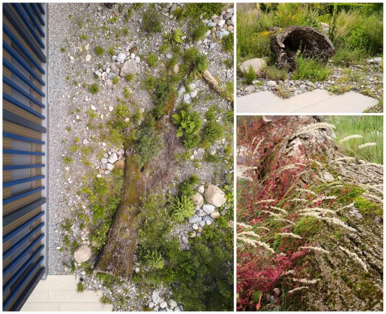Inhaltlich stellt das Konzept die Aspekte Nachhaltigkeit und Biodiveristät im Kontext innerstädtischer Verdichtung in den Vordergrund. So bietet die Umgebung auf dem vergleichsweise knappen Raum eine hohe Strukturvielfalt und somit Lebensraum für die Stadtflora- und Fauna. Unterschiedliche Substrattypen erlauben des Weiteren eine hohe Versickerungsleistung für das anfallende Meteorwasser.