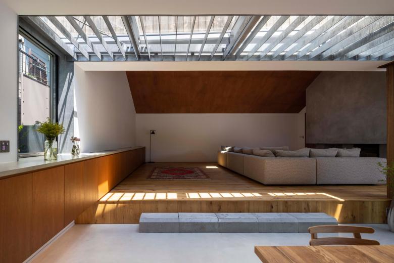 一色海岸から徒歩3分の奥まった私道に面した別荘。このエリアは、江戸時代まで漁村だったが、明治以降、御用邸をはじめ、宮家や要人の別荘が建てられ始めた。この敷地は桂太郎別邸長雲閣の一角だったが、戦後細分化されて、漁村の名残の狭い小道に面して住宅が建ち並ぶ街並みとなった。南北に接する隣地はひな壇状で、北側からは見下ろされる位置関係にある。
