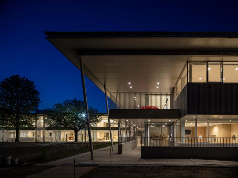 The plan is to create a creative environment that integrates architecture and landscape, a place where people can continue to live together for a long time as a place where they can experience the scenery created by nature in each of the four seasons, the daily weather, the movement of the sun and clouds, and the sound of insects and birdsong, thereby encouraging their growth as people with rich sensibilities. We have tried to create a creative environment that integrates architecture and landscape.