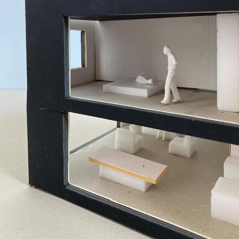 Das Raumkonzept, die Materialität und viele Details des Entwurfs wurden in enger und sehr inspirierender Zusammenarbeit mit der Bauherrschaft entwickelt. Im Vordergrund standen eine minimalistische Gestaltung und Materialität sowie die Schaffung großzügiger Räume mit starkem Bezug zum Außenraum. Anhand von Modellen, Zeichnungen, Collagen und Skizzen wurden verschiedene Entwurfsideen diskutiert und immer wieder überprüft.