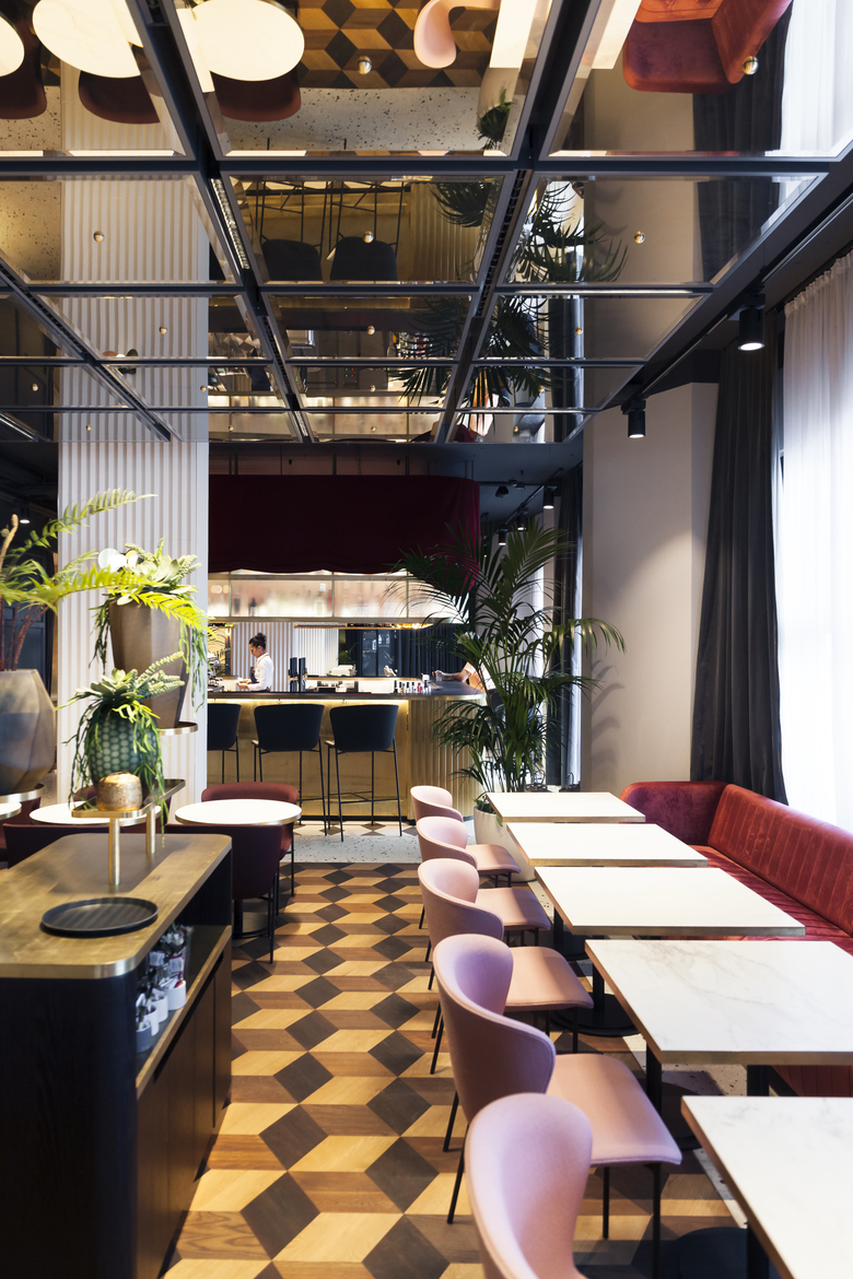 Refurbishment/ Umbau der Gastronomieflächen und Allgemeinflächen im EG (Lobby, Restaurant, Konferenz, Rezeption Küche und Back-off House Bereiche). Studie Vorentwurf, Wettbewerb; Entwurf, Ausschreibung, Generalplanung und Ausführung