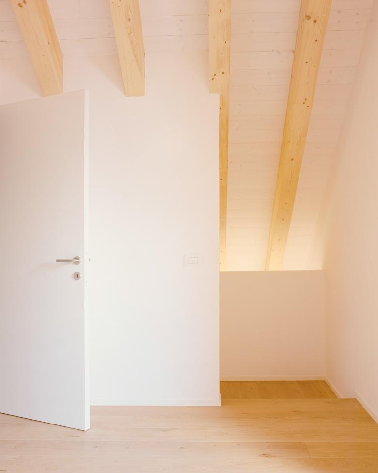 Progetto per una nuova abitazione privata nella periferia di Bassano del Grappa. Il corpo di fabbrica è composto da due volumi principali caratterizzati da funzioni ben definite e collegati tra loro a formare un "T". La porzione di edificio orientato "est-ovest" ospita la zona giorno, impreziosita da uno spazio a doppia altezza che lascia intravedere la copertura in legno ed i locali più tecnici. Il blocco nord sud contiene e distribuisce la zona notte.
