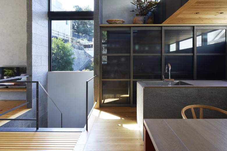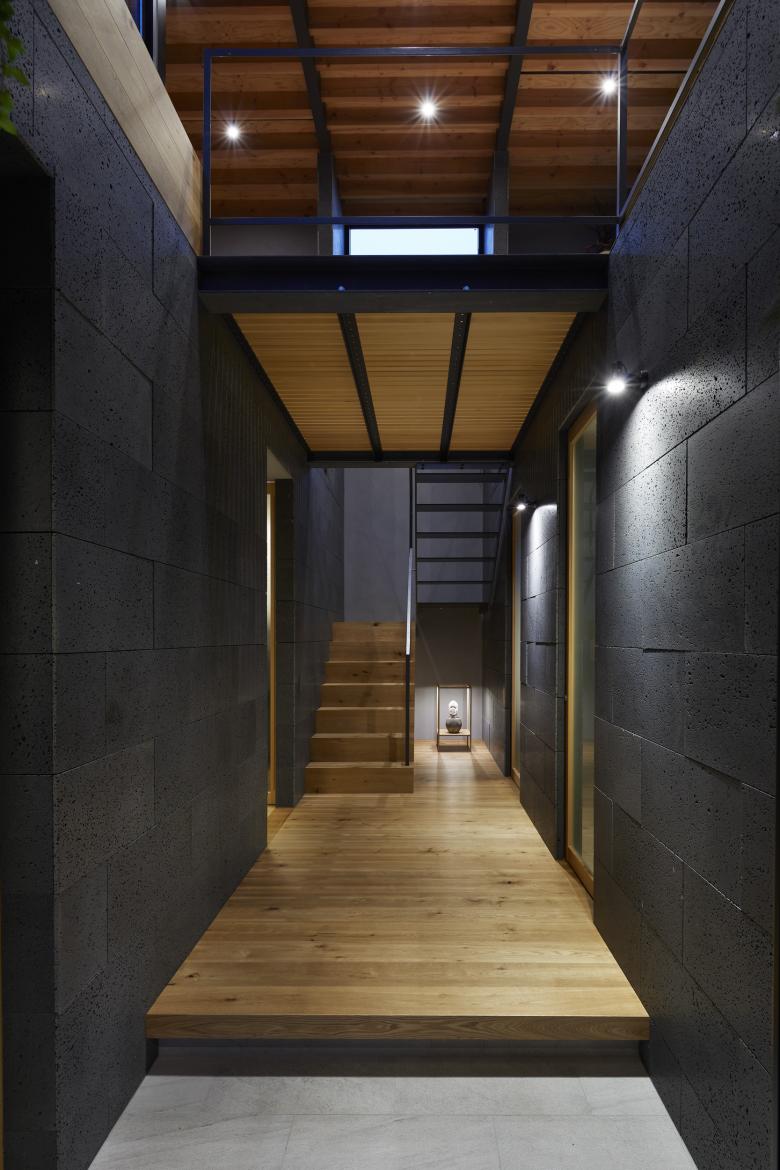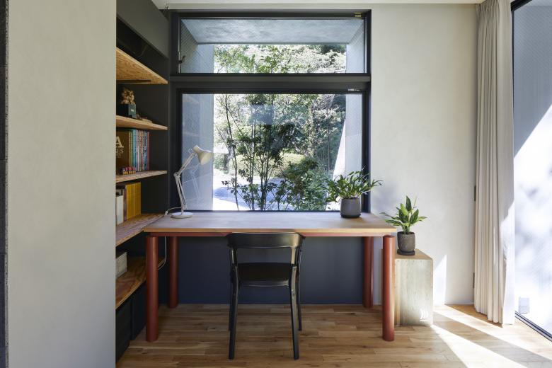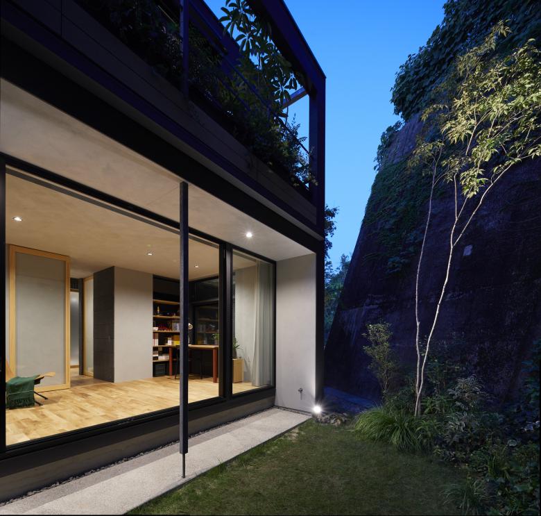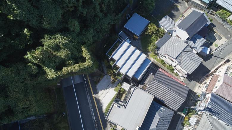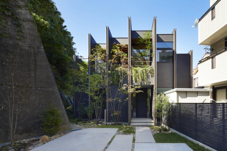 TSUCHIBA Connecting Architecture and Environment – The designer's own residence in Hiroshima City. When we visited the site for the first time, most of the site was covered by shadows caused by the tunnel and retaining wall that pass through Mt. Eba in front of the house, and once through the tunnel, there was a lot of car traffic, probably due to the factories of various companies. The site, with its irregular shape and negative conditions, was difficult to deal with in the surrounding area and seemed to be somewhat left out, but the expanse of lush greenery, which did not seem out of place in an urban area with a mix of houses and buildings, seemed more attractive than these conditions.