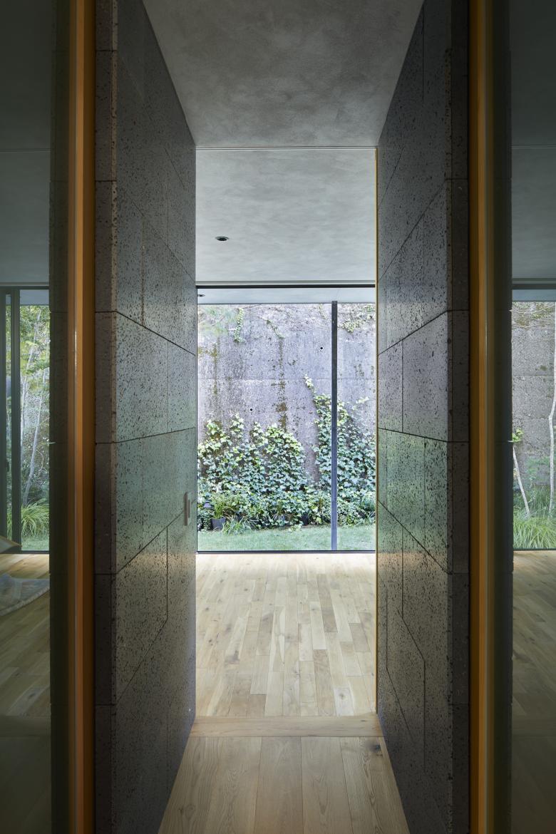 We wanted to create a relationship between the architecture, the surrounding environment, and the garden as a unified whole, not only by incorporating the distant view from within the building, but also by superimposing the near view that we had created on the environment. On this site, when considering the ground surface as the main subject of the architecture, it is unlikely to create a rich relationship between the architecture and the greenery, as it would only face the retaining wall and the shadows of the sun. We measured the height of each retaining wall, and found that the height from which a view of lush greenery can be enjoyed starts at about 4 meters above the ground surface.