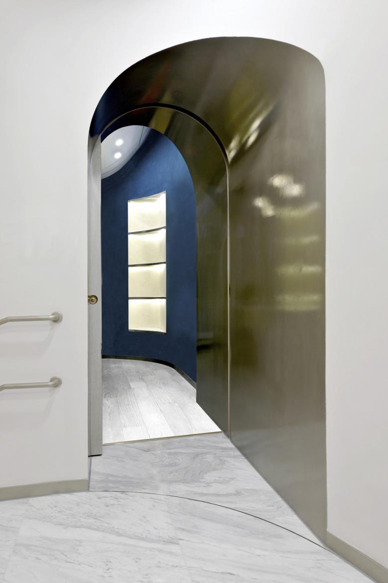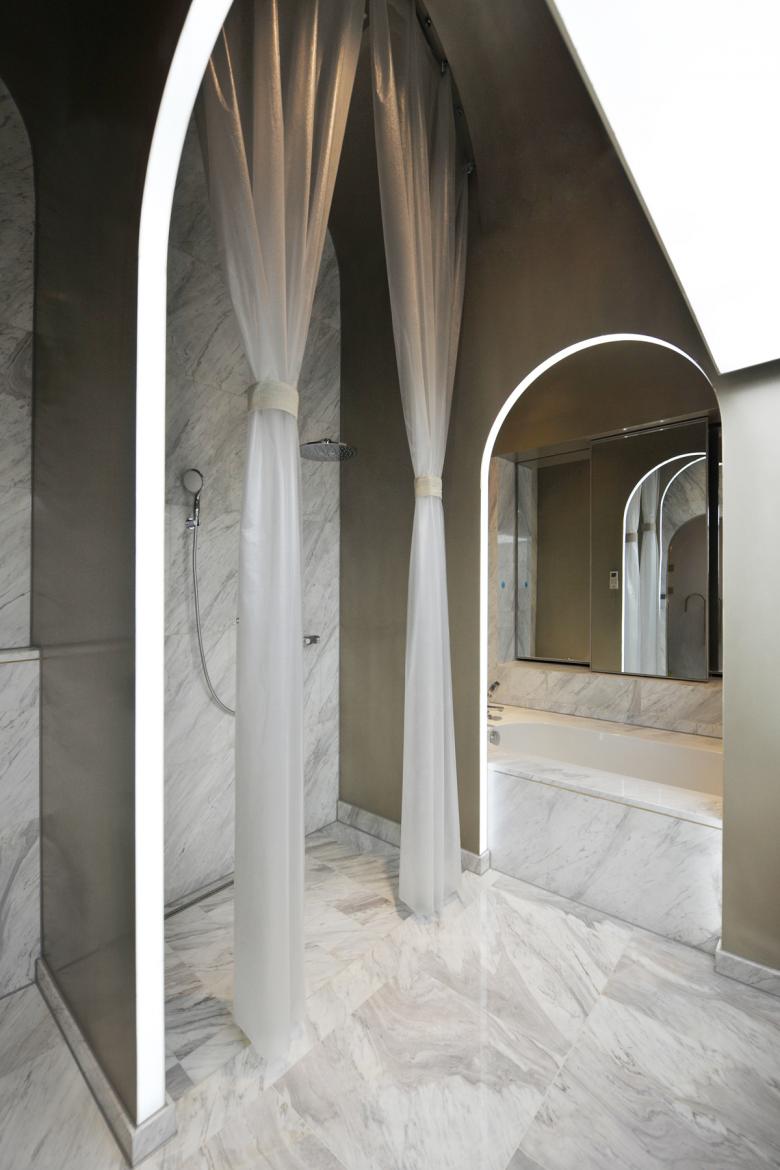 the floors, walls and ceilings. By virtue of the visual tension of arch element, and the dynamic combination of its variations, the whole villa is maneuvered in the transformation, to support and connect each part with a unique rhythm, forming its integral spiritual temperament and space order. This temperament and order has even extended to the south outdoor garden.