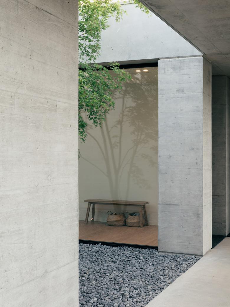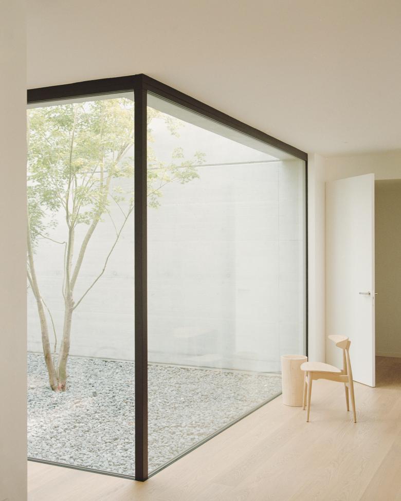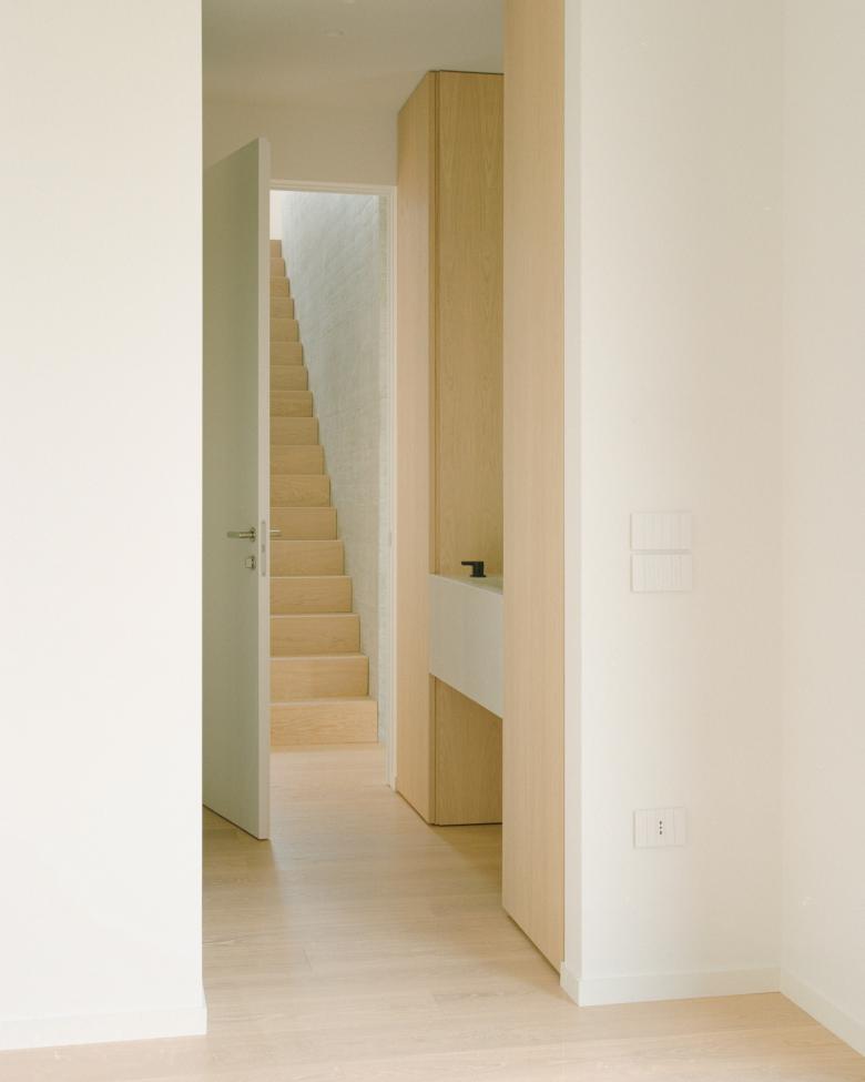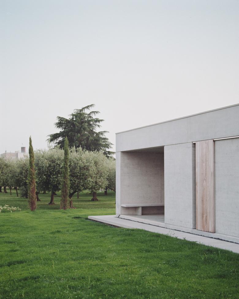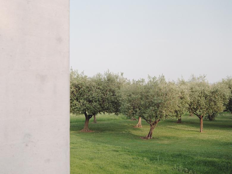 Al contrario, verso il giardino, dove la vista e? protetta dai volumi dell’edificio, la vista si apre, facendo diventare il lungo uliveto un elemento presente anche negli spazi interni della zona girono.