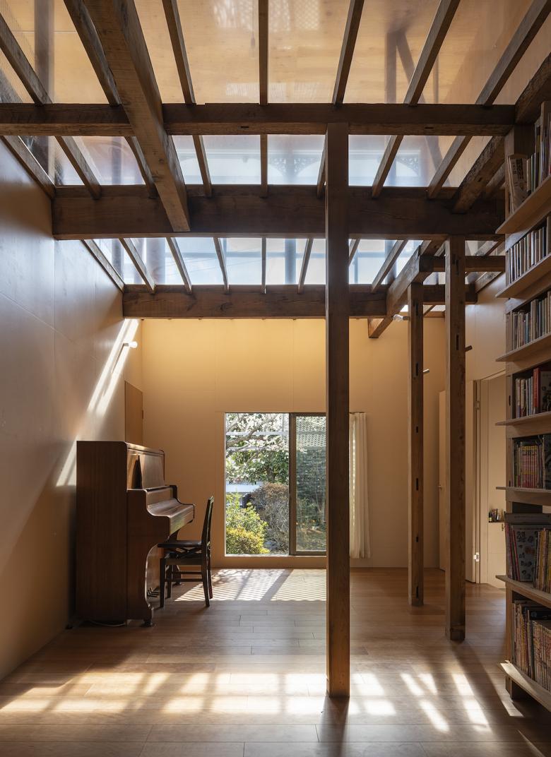 築約50年の木造住宅の改修である。140㎡の住まいを、3人家族で住むためのリノベーションが求められた。既存建物は910グリッドの在来工法の木造住宅で、小さなたくさんの部屋に分けられており、空気が分断されていると感じた。庭と建物の境界にあったパーテーションや雨戸も、街や庭と部屋を分離しているように思われた。