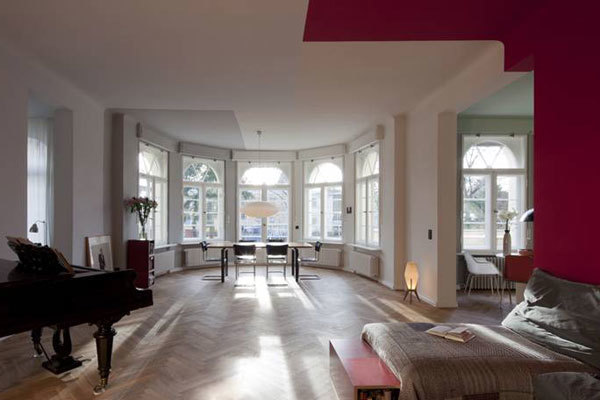 Das Haus stellt eine Ergänzung der ab 1866 mit Einfamilienhäusern nach englischem Vorbild geplanten Bebauungsstruktur im Berliner Westend dar. Der Entwurf von 1927, zur Errichtung eines Landhauses, greift stilistisch auf den Klassizismus zurück. Trotz verschiedener stilistischen Anleihen längst vergangener Epochen konnte das Gebäude durch seine fehlende Maßstäblichkeit und Proportion nie wirklich an den Glanz der Geschichte anknüpfen. Von den Umwälzungen der Moderne blieb die Architektur unberührt. Dieser, in die Bausubstanz eingeschriebenen Ambivalenz, begegnen wir zunächst mit der Freilegung der durch Umbauten überformten Grundrissaxialität, um so die ursprünglich beabsichtigten Raumfolgen wiederherzustellen. Unter Hinzufügung einer gezielt eingesetzten Farbwelt und durch das ablesbare Einstellen neuer Funktionen bilden wir teils komplementäre Raumzonen aus, die das historisch Gewollte und das aktuell Verfügbare zu einem lustvoll erlebbaren Zeitgefühl steigern.