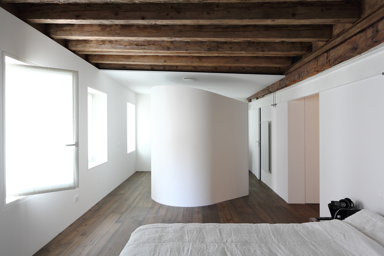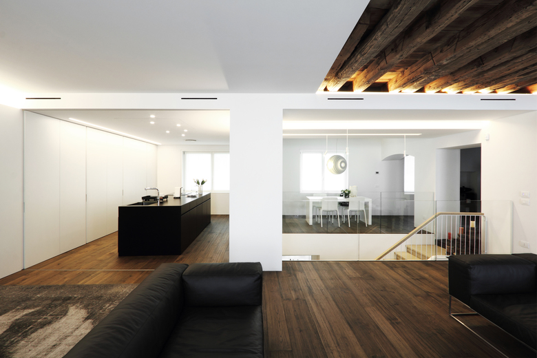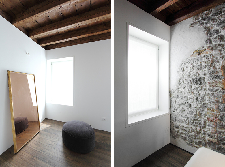 L'appartamento posto all'interno di un palazzo del '400 fu la casa di famiglia sino al terremoto del Friuli del 1976, in seguito al quale l'intero edificio si spaccò in due. Il palazzo fu subito ristrutturato da un punto di vista statico, ma lo shock del terremoto fu tale che l'appartamento non fu più abitato, cadendo in uno stato di completo abbandono. Dopo quasi 40 anni una delle figlie decide di farlo ridiventare la sua casa. Pur essendo stato svuotato di ogni arredo, l'interno trasudava ancora di storia familiare con tutti i suoi carichi emotivi positivi e negativi. Il desiderio dei clienti era di uno spazio totalmente contemporaneo, che cancellasse ogni riferimento al passato.