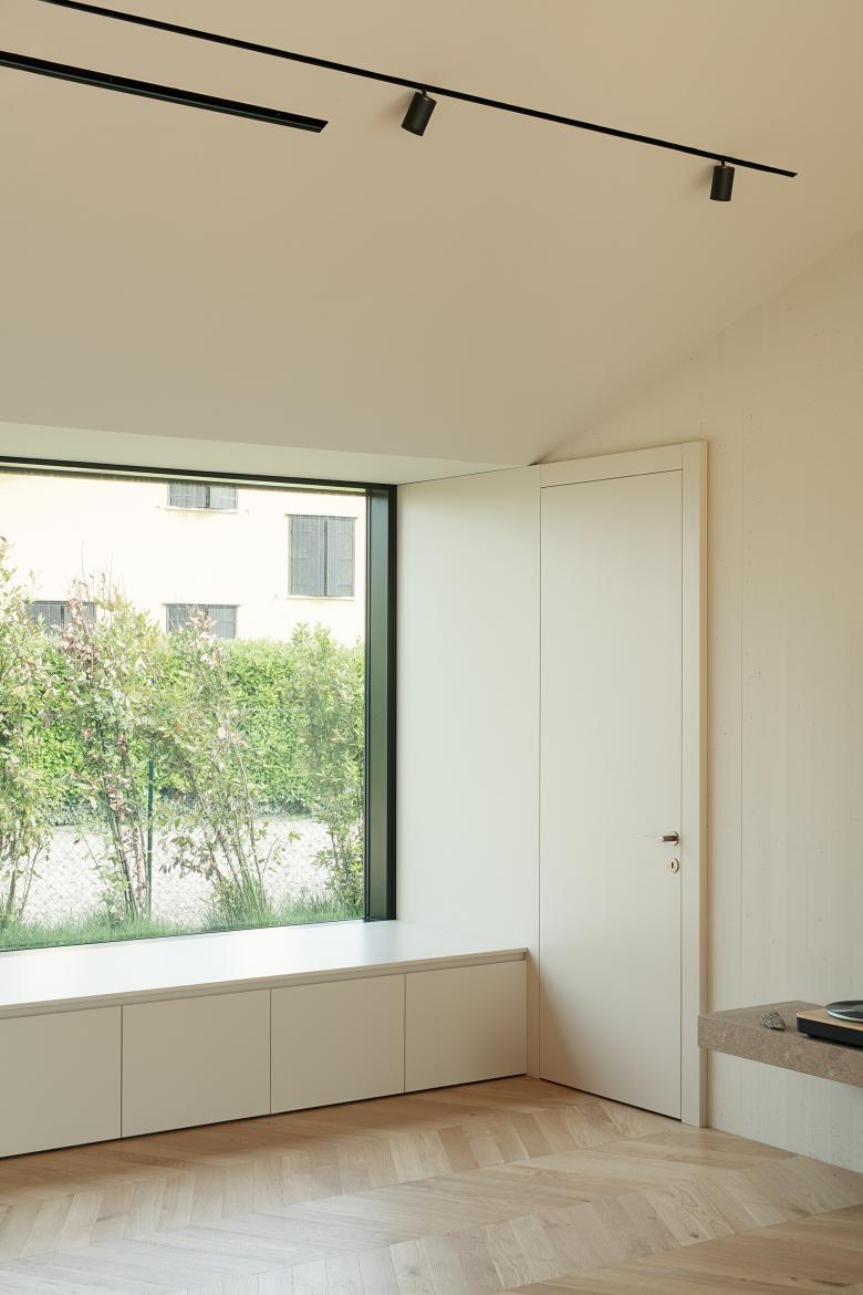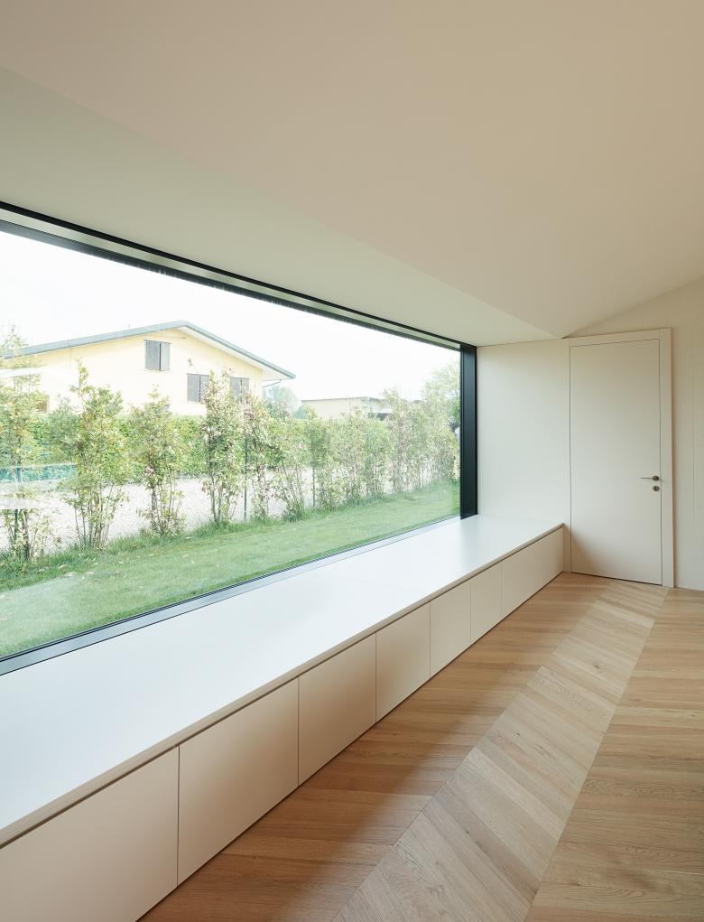 In questo progetto tutti i principi costruttivi sono stati studiati per poter ricondurre lo sguardo dell’osservatore a linee semplici e pulite attraverso elementi a scomparsa, a filo o complanari. L’immobile è fortemente caratterizzato dal disegno essenziale della struttura.