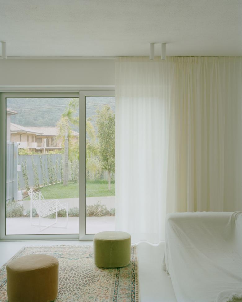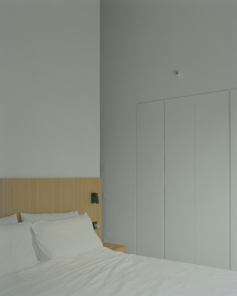 A white plaster finish helps neutralize the building mass, offering an abstract and