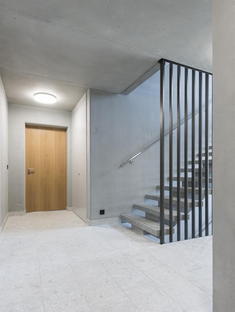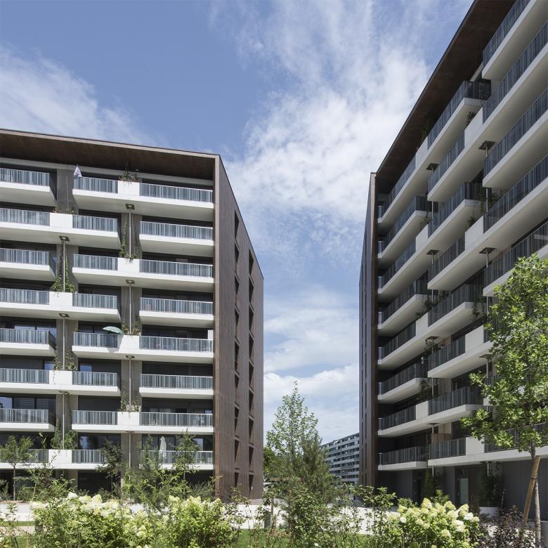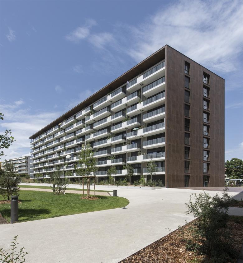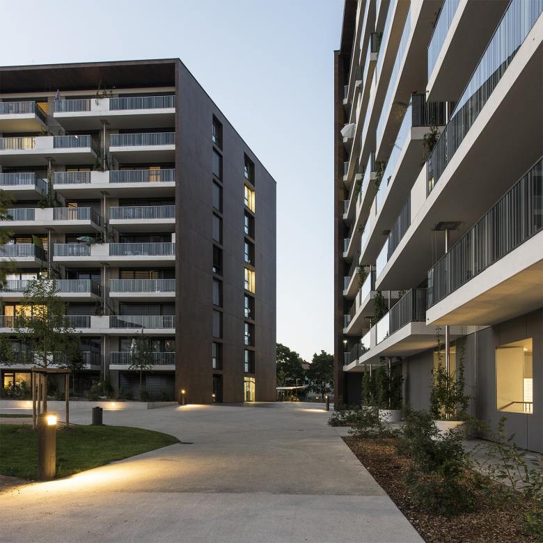 Ce projet prévoit la construction d’un bâtiment haut, en forme de « L », dont le volume est coupé pour former deux immeubles, A et B. Cette ouverture permet l’accès aux logements et sert également de porte vers le quartier depuis l’est de la ville.