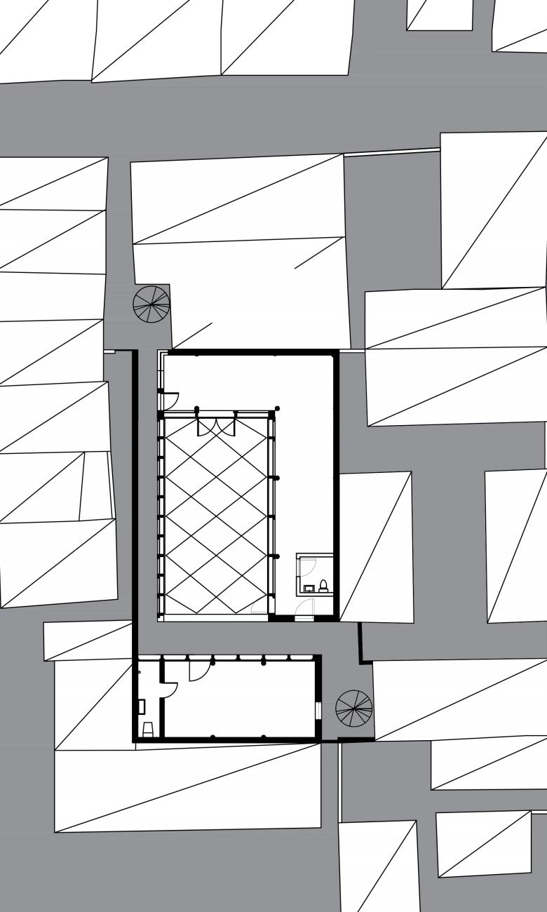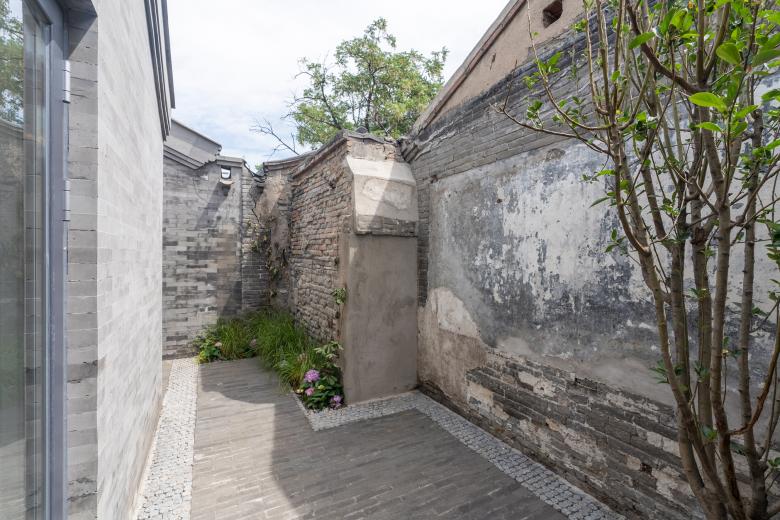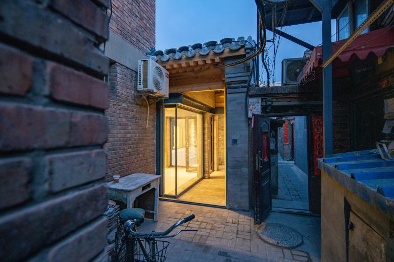 内胡同的改造策略受到本地杂院居民自发的改造策略的启发。本项目入口右边原本是一条小胡同,胡同里的居民将其入口处增设了院门,使其转变为一个杂院——胡同院。鉴于天桥北部平房区在历史上就没有形成严格规制的北京四合院建筑型制,因此本地居民突破胡同——四合院的形态限制,采用灵活多样的设计手法应该受到尊重。不同于此,由于本项目的目标并非增加建筑与人口密度,因此本项目采取相反的策略,将与胡同院入口并联的原本的杂院,改造为一个内胡同,使得原本封闭的杂院空间被由外部延伸进入的内胡同重新组织。内胡同的流线与原院落的中轴线得到同等的尊重,并由此使得院落与内胡同的介面墙体获得了双重性格。这些墙体因此在面对院落与内胡同的两面获得了不同的设计,以对应稳定而宁静的院落以及流动而生动的内胡同。