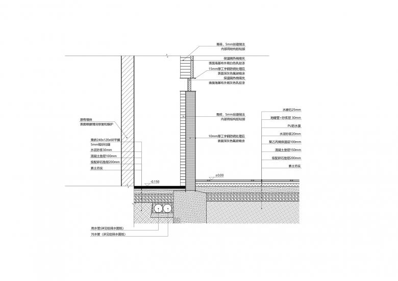 作为北京天桥北部平房区的更新示范项目,该项目的改造经费受到很大的限制,当然这也使得这个示范项目更具现实意义。因此这个设计没有使用复杂的结构形式与昂贵的材料。仅仅使用了四种最普通的材料:木头、灰砖、钢、玻璃。建筑主体釆用北京传统木构,而提供新功能的部分:如玻璃窗、隐形空调风口等则采用钢结构与玻璃,而灰砖则因位置而定,采用传统与现代两种不同的构造做法,并承担新与旧的衔接与转译。
