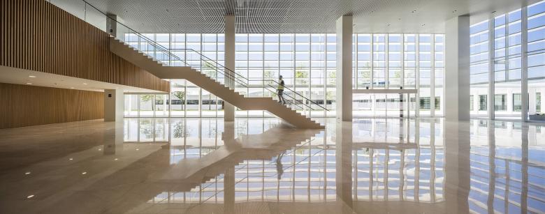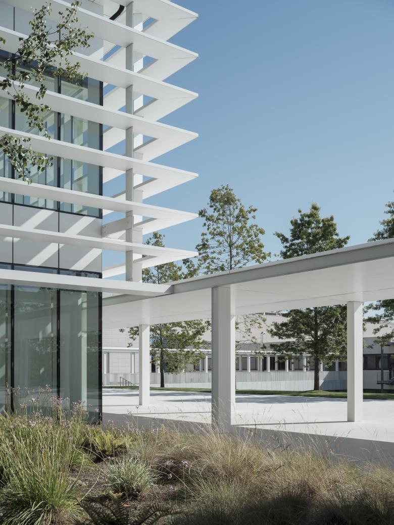 L'ampliació de la Seu Central, amb 70.000 m² construïts, reorganitza i dona coherència a la resta del complex. La proposta prolonga les connexions existents mitjançant un esquema a mode de “claustre”, reinterpretat mitjançant ponts que salven el carrer interior, creant recorreguts per als vianants coberts i protegits de la pluja. El programa diferenciat, permeten un ordre intuïtiu i còmode en un conjunt d'alta densitat.