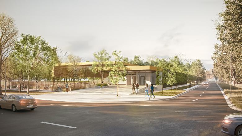 Neubau eines Hallenbades für den Schul- und Vereinssport: Auf dem Gelände des bestehenden Freibades „Parkbad“ entsteht ein Hallenbad-Neubau als Ersatz für das in die Jahre gekommene Schwimmbad an der Bismarkstraße. Das neue Bad wird schwerpunktmäßig dem Schul- und Vereinssport als Dreifachübungsstätte zur Verfügung stehen, aber auch für die Öffentlichkeit zugänglich sein. Formal gliedert sich das Gebäude in zwei parallel liegende Baukörper mit unterschiedlichen Höhen. Der höhere Baukörper umfasst die Badehalle mit einem 25-Meter-Schwimmerbecken, einem Lehrschwimm- und einem Kinderbecken. Im niedrigeren Baukörper befinden sich das Foyer, die Umkleide- und Duschbereiche sowie sämtliche Nebenräume für das Bad.