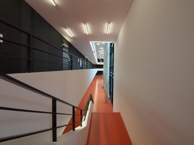 Aus dieser Aufgabenstellung formulierte sich das Konzept für die beiden Institutsbauten als steinerne Skulpturen mit klaren stadtraumprägenden Kanten, welche mit der Bestandssituation und den entstehenden Zwischenräumen auf besondere Art und Weise korrespondieren. Darüber hinaus formen die skulpturalen Gebäude eine neu definierte Eingangssituation der Universität, welche über einen begrünten Vorplatz hin zum neuen Haupteingang in das Innere des Hauptbaukörpers leiten. Hier setzen sich die publikumsintensiven Foyer- und Haupterschließungsbereiche durch ihre Glasfassaden klar von der steinernen Jurafassade, mit ihren präzise eingelassenen Fensterbändern ab und öffnen die Neubauten im Gebäudeinneren hin zum Campus und dem historischen Bestand der ehemaligen Hentschel - Anlage. Aus verschiedenen Blickbezügen innerhalb der Neubauten kommt es dadurch zu Ein- und Ausblicken sowie differenzierten Licht- und Raumsequenzen entlang der 3-geschossigen Foyerzonen. Durch das einfallende Tageslicht geführt, ergeben sich dadurch vielschichtige Raumsequenzen innerhalb des Erschließungssystems, die zum Verweilen und zum wissenschaftlichen Gespräch einladen.