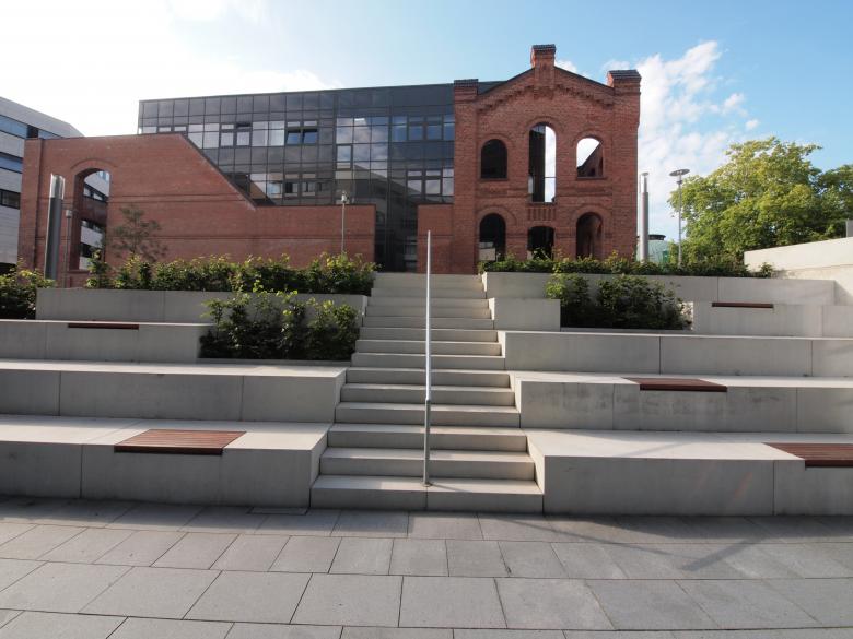 Das Baugrundstück bestand aus zwei schwierig zu bebauenden, dreiecksartigen Teilflächen am südwestlichen Rand der Universität, welche im direkten Kontext zu den historischen Gebäudefragmenten sowie dem Flusslauf der Ahna standen. Aufgrund des komplexen Raumprogramms der Neubauten bestand hier die Herausforderung in einer städtebaulichen und architektonischen Lösung, die innerhalb der bestehenden Grundstücksgeometrie Bestand und Neubau zu einem gut proportionierten Ensemble arrondiert, sowie optimale innere Funktionsabläufe erwarten ließ.