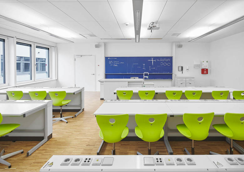 Das Johann-Schöner-Gymnasium in Karlstadt wurde in den 1970er Jahren errichtet. Die Erweiterung wird aufgrund der Klassenentwicklung und des Leistungsspektrums des JSG notwendig. Als Entwurfskonzept wurde die Wahrung der Klassenräume und Verwaltung im Bestand, die Fachräume MINT und Kunst im Neubau gewählt. Der Bestand wird dabei gemäß aktuellen Anforderungen an Schulgebäude sowohl in Belangen der Haustechnik, des Brandschutzes und der Ausstattung im laufenden Schulbetrieb über mehrere Bauabschnitte saniert. Der Neubau wurde als eigenständiger Baukörper errichtet, der sich aber städtebaulich ins Gesamtbild eingliedert. Ein günstiges A/V-Verhältnis trägt zum hochwertigen Energiestandard (EnEV 2009 - 30% hins. PE-Bedarfs) bei. Nachhaltige Materialauswahl und eine günstige Anordnung der Flächen unterstreichen den Science-Lab Charakter, der eine Vernetzung der Fachbereiche und interdisziplinären Unterricht fördert.
