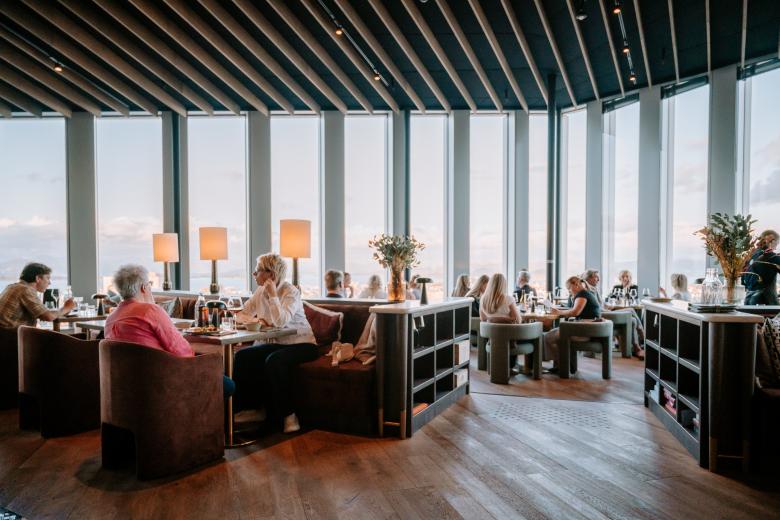 The two first floors of the tower welcome public programs, including a café, restaurant, canteen, lobby, flexible performance spaces, and multifunctional exhibition and event spaces that take place around a large amphitheatre staircase. Floors 3 and underground (U1) house the church currently located on the site. Floors 4 to 12 and 14 to 15 offer open and bright office space, with dramatic 360 views of the city. The 13th floor offers conference facilities, while the top floor includes restaurants, bars, and public space with incredible views of the city and the fjord.