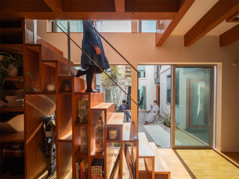 While it may not be feasible for one architect to design an entire village, the intent to achieve a village-like quality within this home is evident. The family now participates in community activities, forming a local group called "Keizan Kai," which organizes events such as flea markets in front of their home.