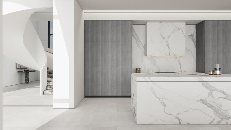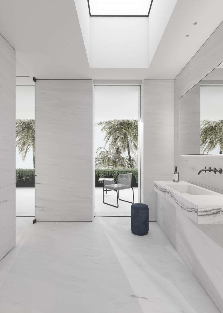 18,000 sq ft Palm Jumeirah residence was designed for a young family seeking a modern, minimalist retreat with a strong connection to outdoor living. The four‑bedroom home features a large pool, a dedicated pavilion, and a series of wellness‑focused spaces including a sauna, massage room, and home theatre. A refined palette of marble and travertine flows throughout, creating a calm, cohesive environment. Clean lines, generous volumes, and natural light define the architecture, resulting in a contemporary family sanctuary that balances luxury with effortless livability.
