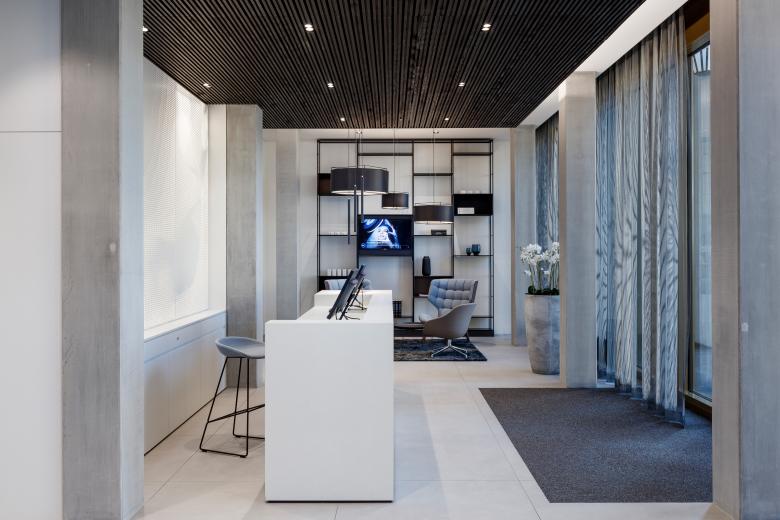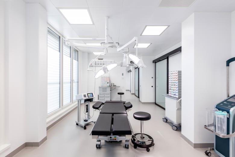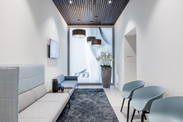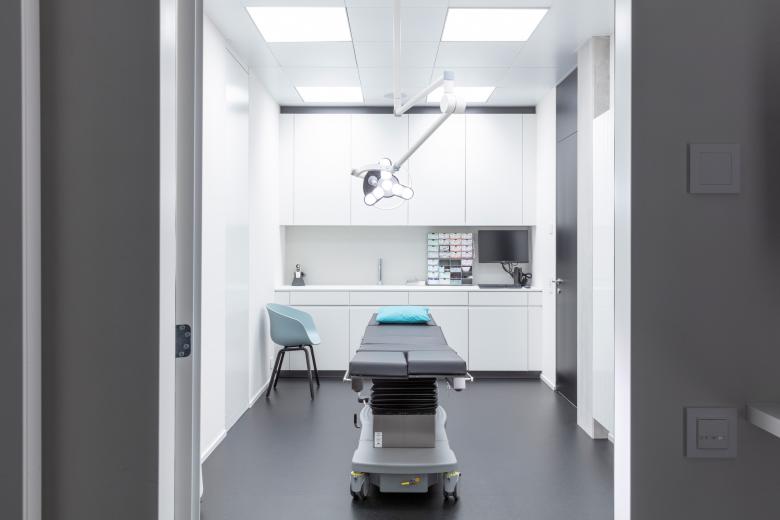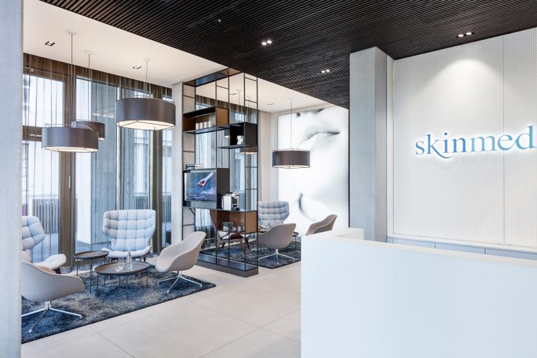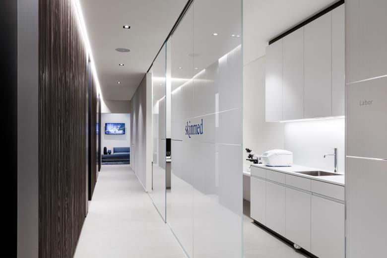Die Klinik für klassische Dermatologie und plastisch-ästhetische Chirurgie erstreckt sich über eine Gesamtfläche von 1190 m2, verteilt auf drei Geschosse. Wo man normalerweise nüchterne Spitalatmosphäre erwarten würde, werden hier Patienten wie Hotelgäste empfangen: Der Eingangsbereich mit Designersesseln und dekorativen Hängeleuchten gestaltet sich wie eine Lounge. Und die Zimmer für stationäre Aufenthalte ähneln Luxus-Suiten. Infusionshalter und jegliche Technik, die an eine Klinik erinnert, wurden kaschiert. Minibar und Espressomaschine machen die Illusion eines Hotels perfekt. Trotz des hohen Designanspruchs werden in allen Bereichen strengste klinische Anforderungen gewährleistet. In den Operationssälen der Klinik sorgen modernste Medizintechnik und spezielle Lüftungsanlagen für höchste Sicherheitsstandards.