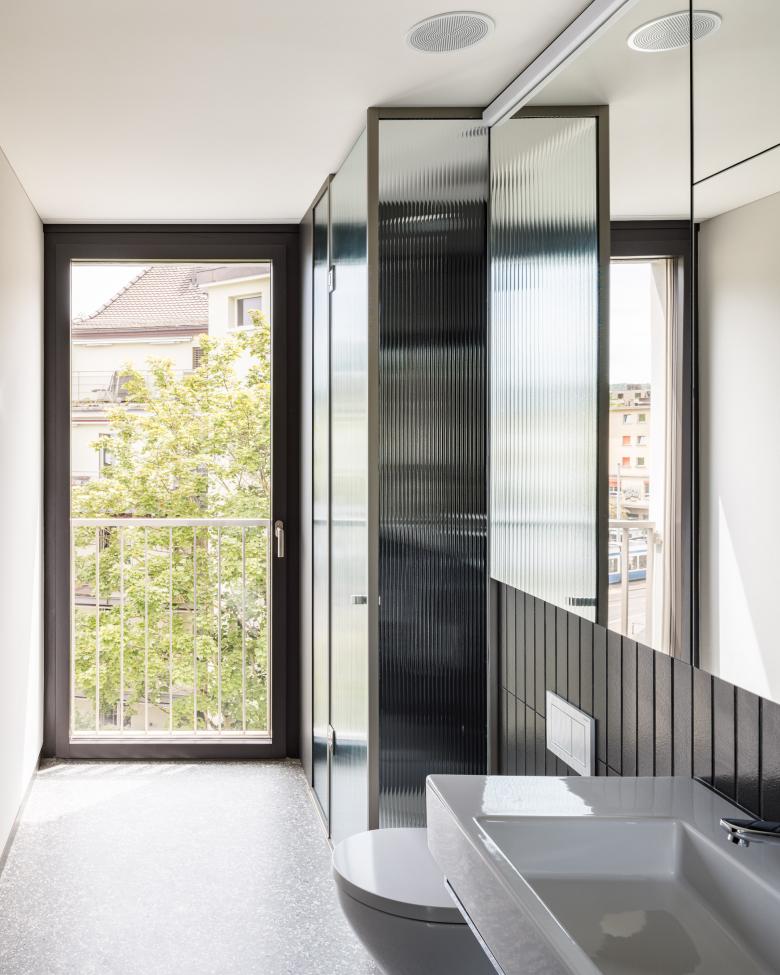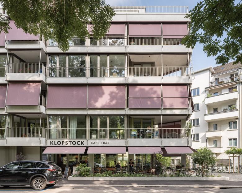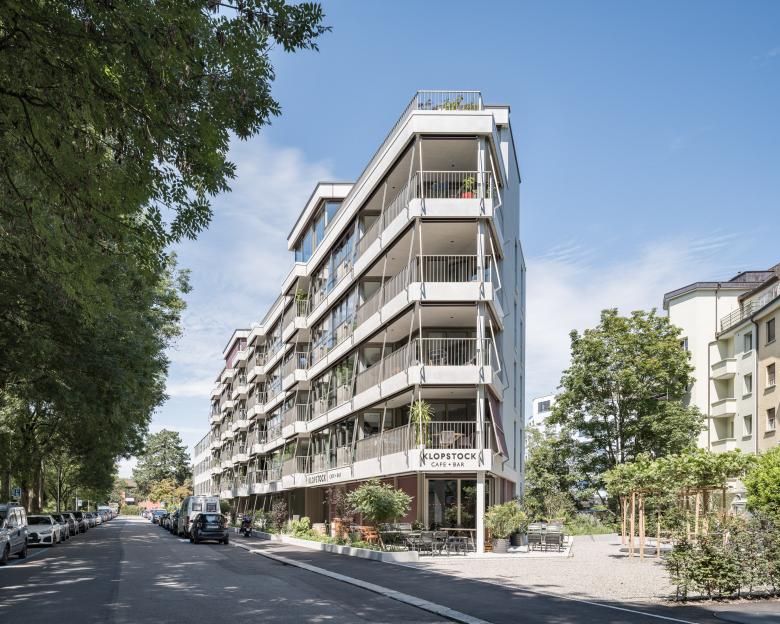An der Klopstockstrasse in Zürich entstand im Zuge eines gewonnenen Studienauftrags ein Neubau mit 25 Wohnungen und einem Café, der 2024 bezogen wurde. Zwei Eingangshallen verbinden die Quartierstrasse mit dem Hof. Im Erdgeschoss schafft ein Niveausprung innerhalb der Wohnungen ein Hochparterre mit Wohnraum zum Park. In den als Dreispänner organisierten Regelgeschossen faltet sich jeweils eine polygonale Loggia zu den Eschen entlang der Strasse auf. Raumhohe Fenster eröffnen den Blick ins Grüne. Das Gebäude von Meier Hug Architekten fügt sich beinahe unbemerkt und doch selbstverständlich in den urbanen Raum ein. Das atmungsaktive und gut dämmende Einsteinmauerwerk Porotherm sorgt für eine hohe Nutzungs- und Lebensqualität für die Bewohnerinnen und Bewohner. Durch die sensible Einpassung in die bestehende Landschaft und den städtebaulichen Kontext werden sowohl ästhetische als auch funktionale Bedürfnisse berücksichtigt.