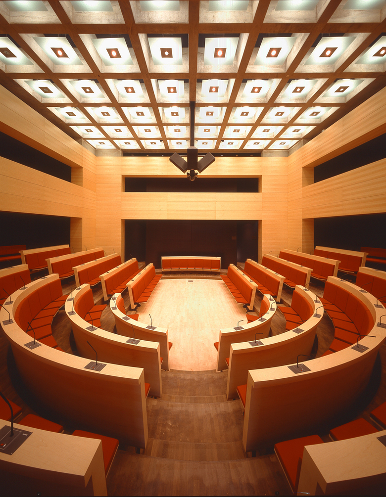 An exponierter Stelle - am Rande des Tiergartens in Berlin - entstand im 1. Bauabschnitt ein Veranstaltungshaus der Konrad-Adenauer-Stiftung. Der Baukörper nimmt in Maßstab und Materialität Bezug auf die nahe gelegenen Botschaftsvillen der Tiergartenstraße. Entsprechend der Nutzungsschichtung bildet das umlaufende Glasband der Büroetage den oberen Abschluss der darunter liegenden Natursteinfassade des Veranstaltungsbereiches.