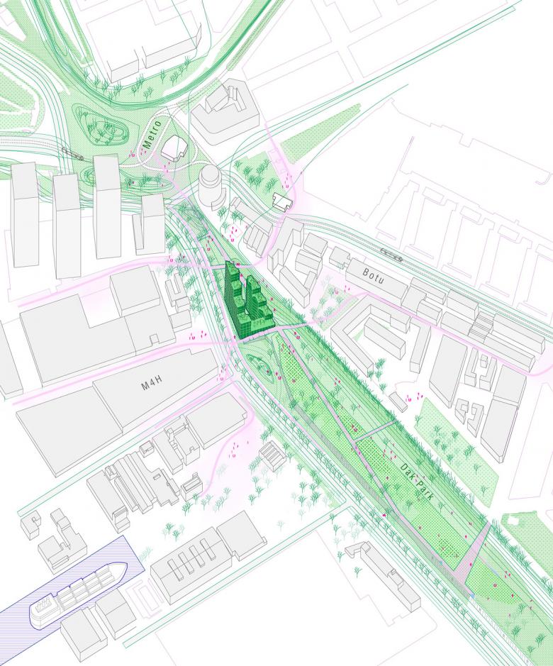 Ubicado en la cabecera del Dakpark, el edificio aspira a convertirse en un ícono verde que apoye la biodiversidad local y mejore la flora y fauna. El diseño, realizado por el estudio barcelonés H3O en colaboración con la firma holandesa INBO, fue el ganador del concurso Europan 2019 para jóvenes arquitectos europeos. Tras la finalización del edificio, prevista para finales de 2026, el municipio de Róterdam desarrollará también los espacios exteriores circundantes, enriqueciendo el entorno urbano. El proyecto, encargado por Woonstad Rotterdam con un presupuesto total de 28.000.000 € (IVA incluido), contribuye a abordar la crisis de vivienda en Delfshaven, ofreciendo una combinación de viviendas sociales y de alquiler medio que permite a los mayores de los barrios adyacentes trasladarse a residencias más adecuadas.