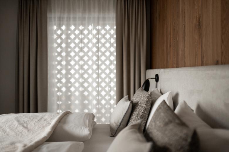 The building feels welcoming thanks to the use of elements and materials typical of Alpine architecture, yet it remains innovative through their contemporary reinterpretation. The complex roof structure and the sharp-edged forms created by the balconies convey a sense of strength that reflects the chalet’s modern spirit. At the same time, the use of local materials such as wood and stone lends the structure warmth and a strong connection to its context.