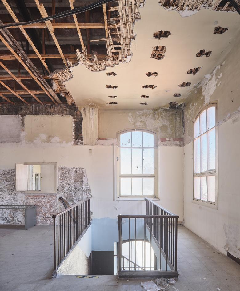 The architectural ensemble consists of three volumes: the street-facing building, originally used as a textile factory that benefited from surplus electricity; and two parallel structures accessed through a passageway and central courtyard, which housed the boilers and machinery. The basements contained coal bunkers and smoke extraction ducts connected to the large chimney. In the new functional layout, the largest volume remains open-plan to accommodate performances and multipurpose activities, while the central building has been converted into a public foyer. The upper floors of the former textile factory now house municipal offices.
