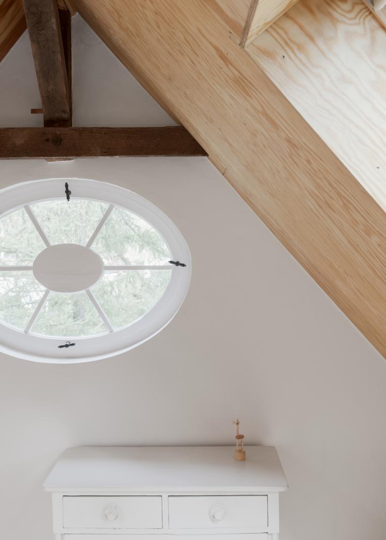 Auch die sorgfältig von Julia ausgewählten Möbelstücke und Accessoires schaffen in beiden Teilen des Hauses eine ruhige Atmosphäre. Die Küche mit ihren weißen Schränken und einfachen Linien ist funktional wie ästhetisch überzeugend, der Wohnbereich hell und einladend. Viele Details, sei es der schlichte Türgriff oder die eisernen Wasserspeier zeugen von einem feinen Gespür für Harmonie der Bewohner.