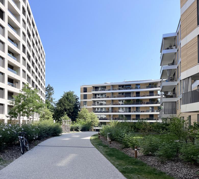 Le projet est situé dans le quartier des Eaux-Vives, proche du CEVA et du tram comprend la réalisation de quatre immeubles de logements reliés par l’espace vert collectif.
