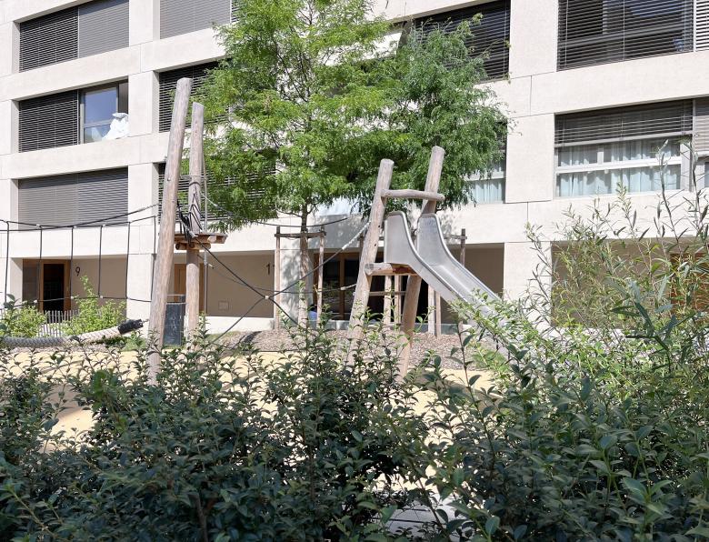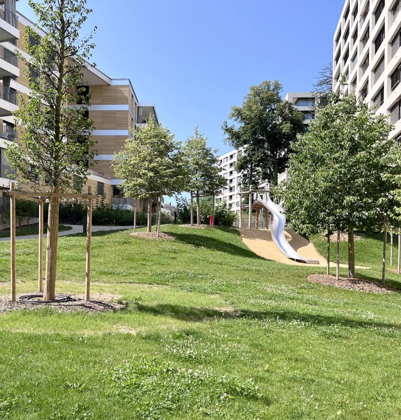 - Diminuer l’impact du parking souterrain en accentuant l’atmosphère paisible de jardin avec ses poches de jeux.