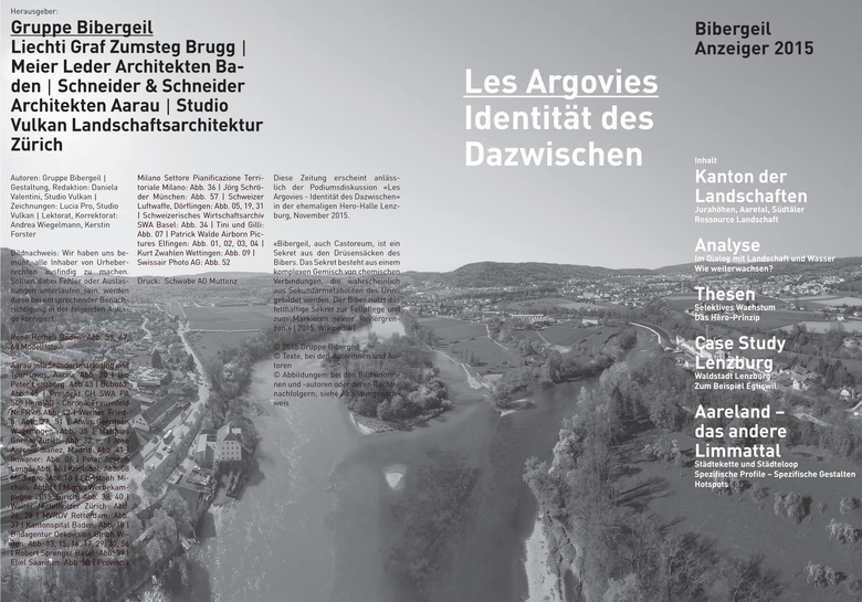 Von der Zersiedelung zum selektiven Wachstum: Die Gruppe Bibergeil – bestehend aus den Architektur- und Landschaftsarchitekturbüros Liechti Graf Zumsteg aus Brugg, Meier Leder aus Baden, Schneider & Schneider aus Aarau und Studio Vulkan aus Zürich – fordert eine spezifische und synchrone Entwicklung von Siedlung und Landschaft im Aargau. Mit Entwürfen wie dem Hero-Prinzip, der Städtekette oder der Waldstadt Lenzburg zeigen die Architekten und Landschaftsarchitekten in der Studie «Les Argovies – Identität des Dazwischen» auf, wie sich der Aargau räumlich entwickeln soll.