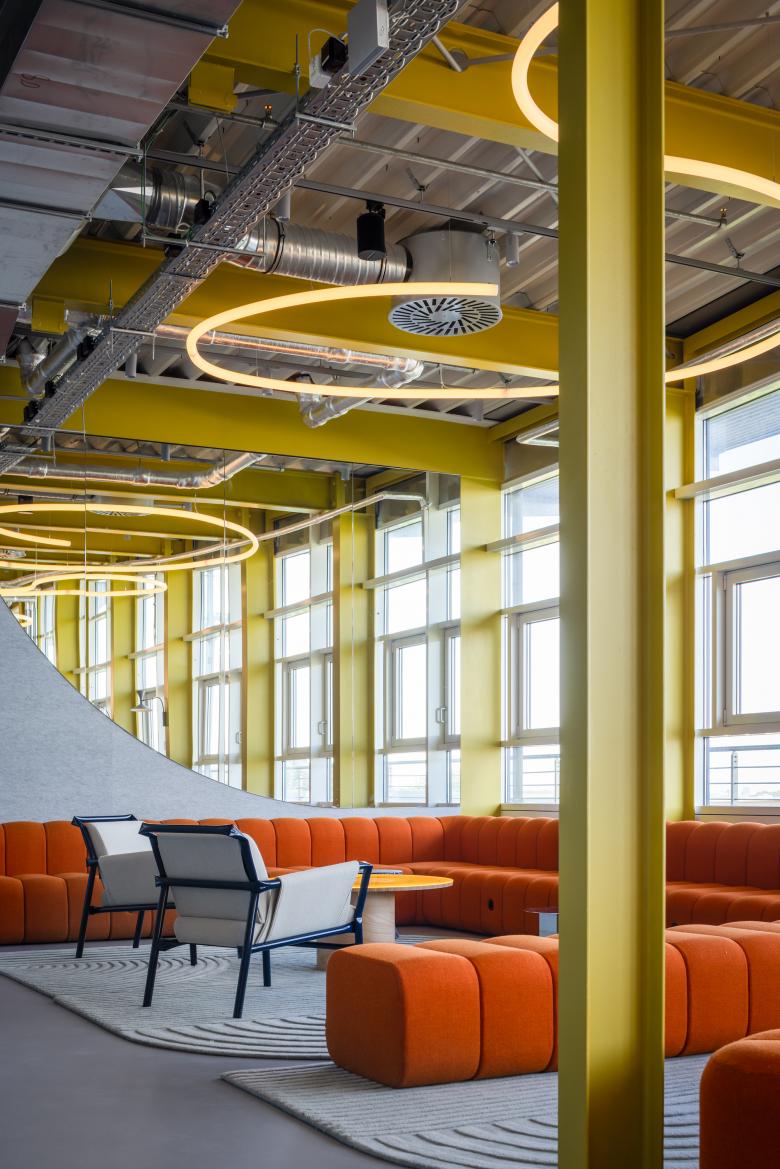 Die Arbeitswelten verändern sich: Mehr Home Office und Remote Work stellen komplexe Herausforderungen an eine zeitgenössische Bürogestaltung. Gerade in die Jahre gekommene Häuser in Randlagen großer STädte haben es hier nicht gerade einfach. Dies trifft auf den Bürokomplex an der Lilienthalallee in München Freimann im Norden der bayerischen Hauptstadt zu: Die drei Gebäude, die insgesamt rund 45.000 Quadratmeter messen und 5 bis 6 Geschosse hoch sind, wurden 2002 von Architekt Walter Lehneis gebaut und entsprechen nicht mehr den heutigen Standards an New Work. Die Eigentümerin GVG kam auf Olufemi Moser zu mit dem Wunsch, die Gebäude nach dem Auszug eines großen Hauptmieters nachhaltig zu revitalisieren und für kleinteiligere, flexibel gestaltete Full Service Office-Einheiten modern aufzubereiten. Zusammen mit den Auftraggebenden sowie Michael Schmutzer, dem ehemaligen Macher der Design Offices, entwickelten wir ein ganzheitliches Konzept aus Innenarchitektur und Architektur, das in eine umfassende Markenstrategie eingebunden ist.