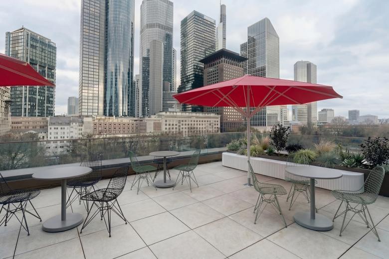 Die neu positionierten Multipurpose-Räume eröffnen mit mobilen Trennwänden und flexibel nutzbaren Möbeln vielfältige Szenarien für Meetings, Seminare oder informelle Begegnungen. In Kombination mit den reaktivierten Dachterrassen entstehen wandelbare Arbeits- und Aufenthaltsbereiche mit hohem Aufenthaltswert.