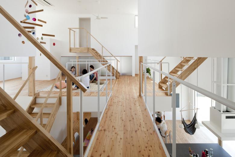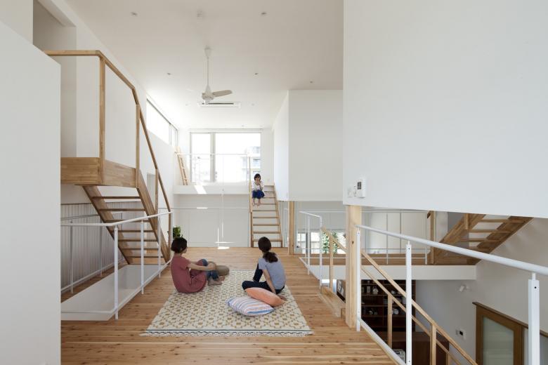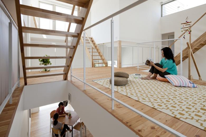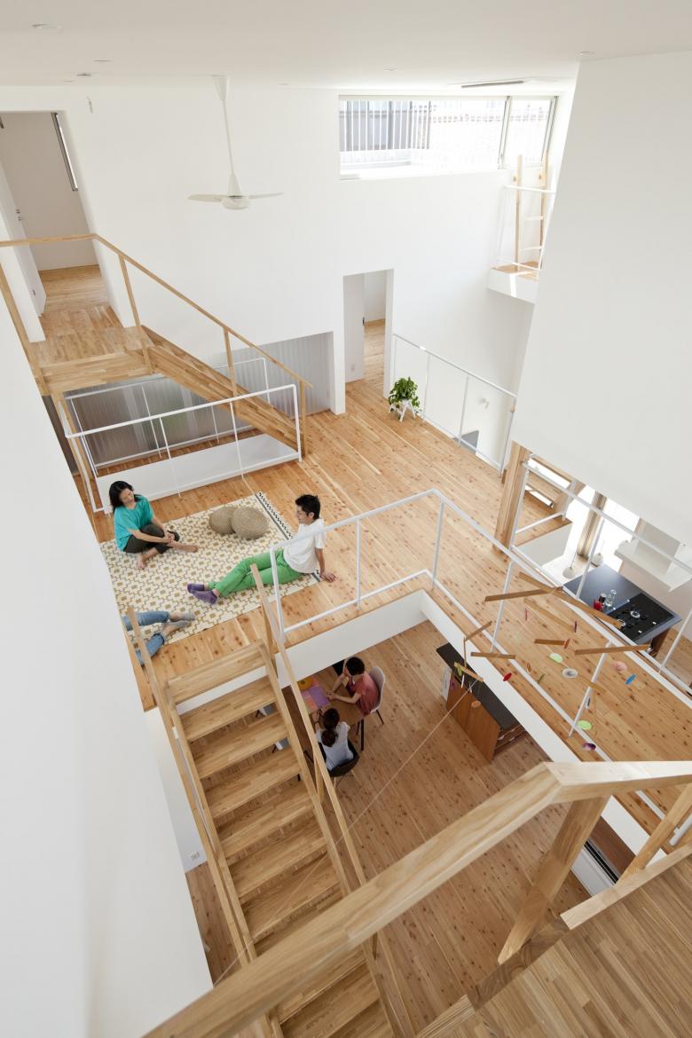 共用部と個室の配置を同時に検討し、個室の立体的なレイアウトによって、残余としての共用部に異なる居心地の居場所を複数作り上げました。