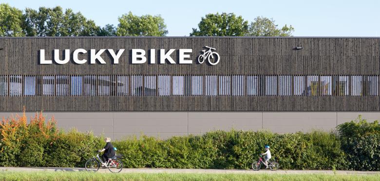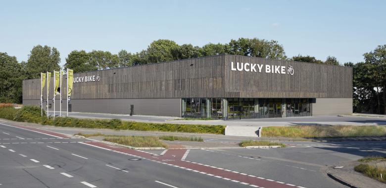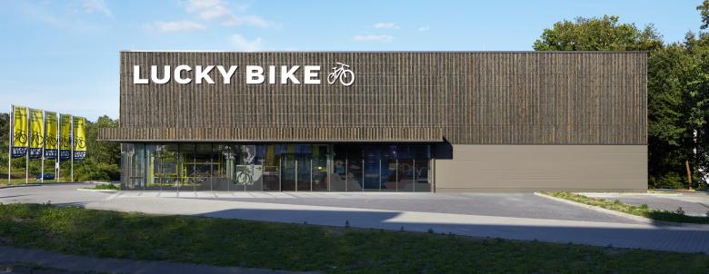 Die Firma Lucky Bike ist eines der größten Fahrradhandelsunternehmen Deutschlands und an 29 Standorten in Deutschland vertreten. Die Bielefelder Lucky Bike-Filiale wurde im Jahr 2008 eröffnet, entspricht aber nicht mehr den Anforderungen eines rasant wachsenden Marktes für Fahrräder. Aus diesem Grund wurde entschieden, diese durch einen Neubau an gleicher Stelle zu ersetzten. Das Grundstück liegt direkt an einer wichtigen und stark frequentierten Bundesstraße, so dass das Gebäude von vielen gesehen wird. Nicht nur aus diesem Grund legte der Bauherr Wert auf eine ansprechende Architektur.