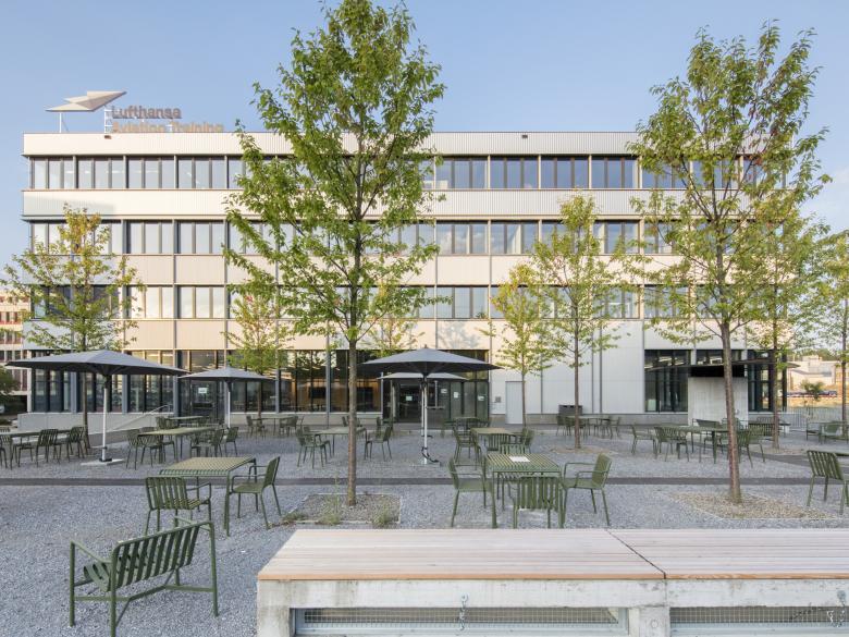 Büroräume. Das 2. Obergeschoss dient als Direktions- und Assessmentetage. Auf dem 1. Obergeschoss befinden sich Spezialräume für die Schulung der Flugbegleiter. Das Gebäude wird als Betonskelettbau ausgeführt. Die
