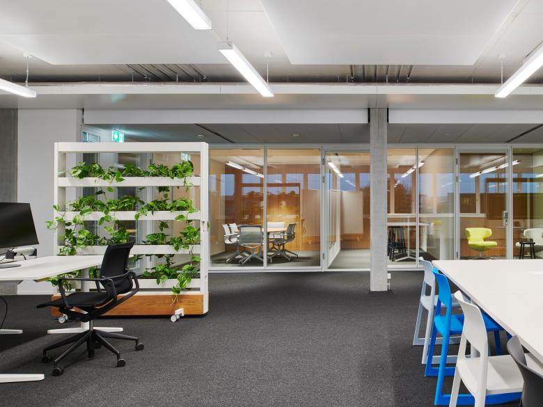 Gebäude wird über eine verglaste Lobby betreten, von wo