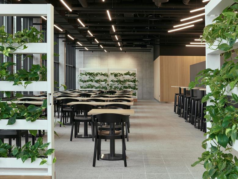 Cafeteria mit Terrasse und grosszügiger Freitreppe. Das