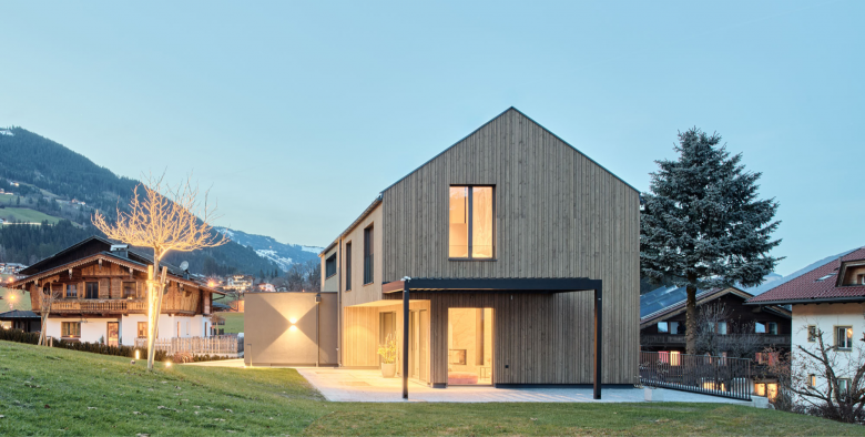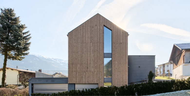 Dieses Projekt zeigt ein Wohnhaus, das die Schönheit und Vielseitigkeit des Holzbaus verkörpert. Das Haus besteht aus einem Holzriegelbau, eine Bauweise, bei der die Tragstruktur aus vertikalen und horizontalen Holzriegeln besteht, die sowohl die statischen Anforderungen erfüllen als auch eine ästhetische Wirkung erzeugen. Durch die geschlossene Fichtenschalung erhält das Gebäude eine warme und natürliche Optik, die perfekt in die umgebende Landschaft integriert ist.