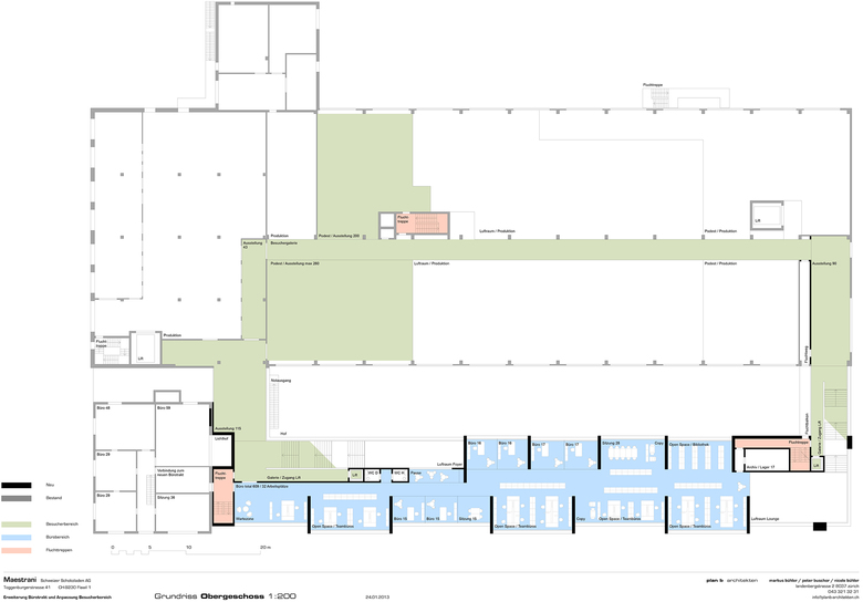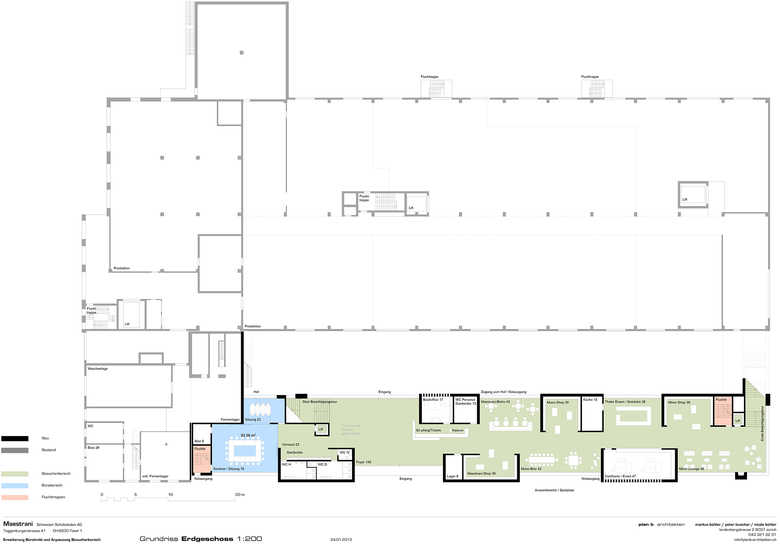 - Variantenstudien zum Ausbau des Besucherbereiches „Schoggiland“ und des Bürobereiches der Firma Maestrani in Flawil.