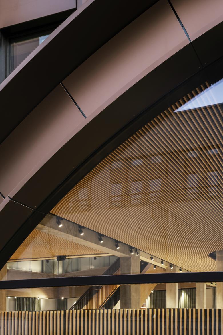 Das Haus eröffnet den Blick auf die Arbeitswelt der Zukunft: sie ist kommunikationsoffen und auf die Verbindung von Stadt- und Naturraum bedacht. Und nicht zu vergessen, sie ist auch vom Komfort und Atmosphäre geprägt. Komfortabel sind die Freibereiche, die intimen Besprechungsbereiche, atmosphärisch trägt die Haptik der Vollholzes dazu bei, über das Sichtbare zum Fühlbaren zu kommen.