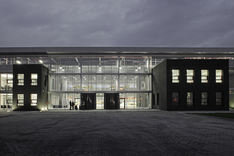 Das Layout der Montagefabrik sieht eine kompakte Halle für alle Montage- und Vormontageprozesse vor. Vor Kopf sind die Lagerfunktionen für eine optionale flexible Erweiterung der Montage innerhalb des Gebäudes organisiert. Lackieranlage und Fahrzeugfinish sind als eigenständige Einheiten seitlich angebaut. Ein Integrations- und Kommunikationszentrum verknüpft diese Bereiche. Hier sind Administration, Kantine, Sozialräume und Schulungsflächen direkt in die Montagehalle integriert.
